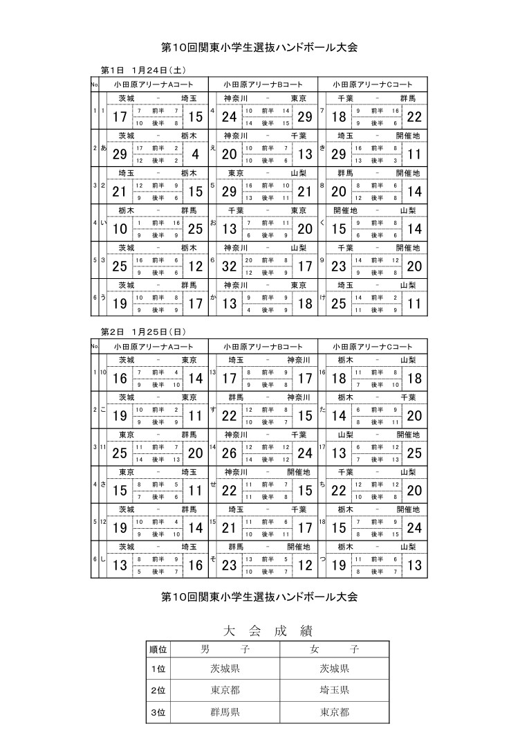 2026年1月24日(土)~25日(日)に開催された【第10回 関東小学生選抜ハンドボール大会】@小田原アリーナの試合結果をお知らせいたします。
